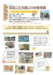<p>認定こども園 このみ保育園<br /> 〒651-1243<br /> 兵庫県神戸市北区山田町<br /> 下谷上字箕ノ谷21-1<br /> TEL:078-583-2203</p> <p></p> <div style="text-align: center;"><a title="マップ" href="https://www.google.com/maps/preview#!data=!1m4!1m3!1d4059!2d135.1554384!3d34.7573692!4m25!2m11!1m10!1s0x0%3A0x51aab83b630938ed!3m8!1m3!1d26081603!2d-95.677068!3d37.0625!3m2!1i1024!2i768!4f13.1!5m12!1m11!1z44GT44Gu44G_5L-d6IKy5ZySIG5lYXIg5pel5pysLCDlhbXluqvnnIznpZ7miLjluII!4m8!1m3!1d26081603!2d-95.677068!3d37.0625!3m2!1i1024!2i768!4f13.1!17b1" target="_blank">大きなマップで表示する</a></div>